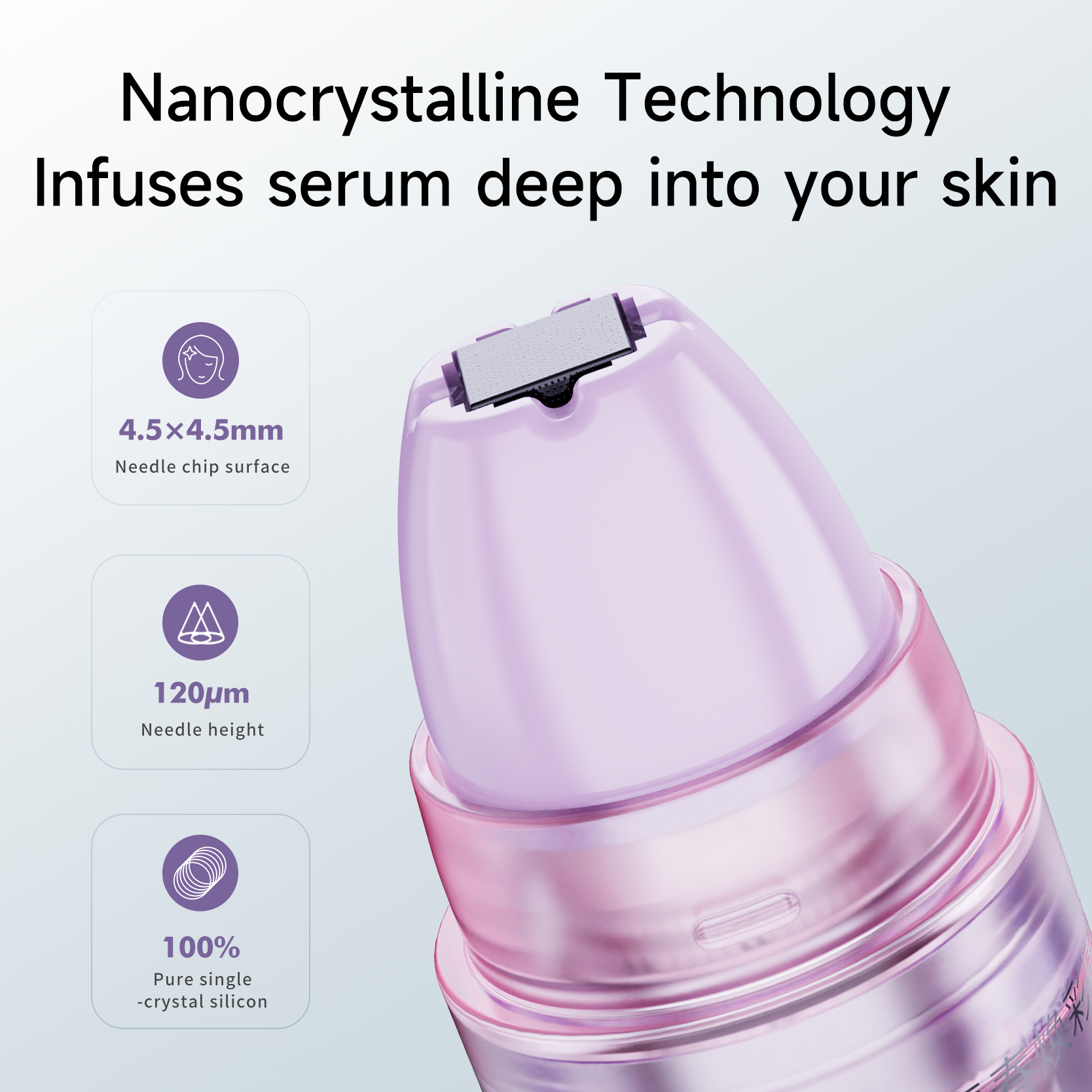 Position the needle chip surface in horizontal contact with the skin, move the device quickly and gentle up and down.