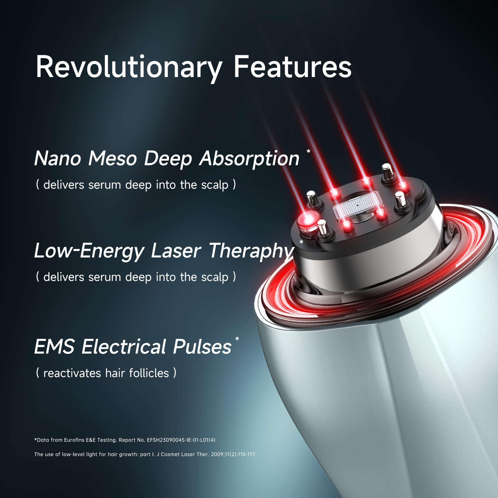 Combines nano meso, low-level laser therapy, and micro-current stimulation to rejuvenate your hair.